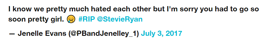 So why were fans so angry at the seemingly sincere tweet? After past feuds, they believed Jenelle was using Stevie’s death to get attention for herself. “Jenelle Evans, you f*cking attention seeking POS, Stevie hated you for a reason. You only hated her bc she saw you for what you truly are,” one fuming fan wrote. Another agreed, tweeting “Jenelle using Stevie‘s death to gain attention/sympathy is disgusting. I wish karma would come for her already. She’s an awful person.”