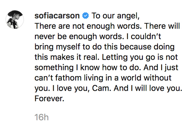 “And I just can’t fathom living in a world without you,” she continued. “I love you, Cam. And I will love you. Forever.” Sofia and her co-stars were getting ready for the premiere of Descendants 3, which was supposed to be on July 22, and is now cancelled due to this tragic circumstance.