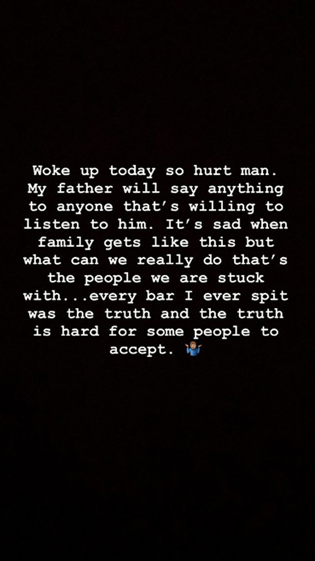 Update 4:19 PM ET: Drake has responded on his Instagram Story: “Woke up today so hurt man. My father will say anything to anyone that’s willing to listen to him. It’s sad when family gets like this but what can we really do that’s the people we are stuck with…every bar I ever spit was the truth and the truth is hard for some people to accept.”