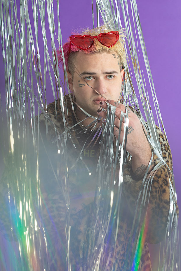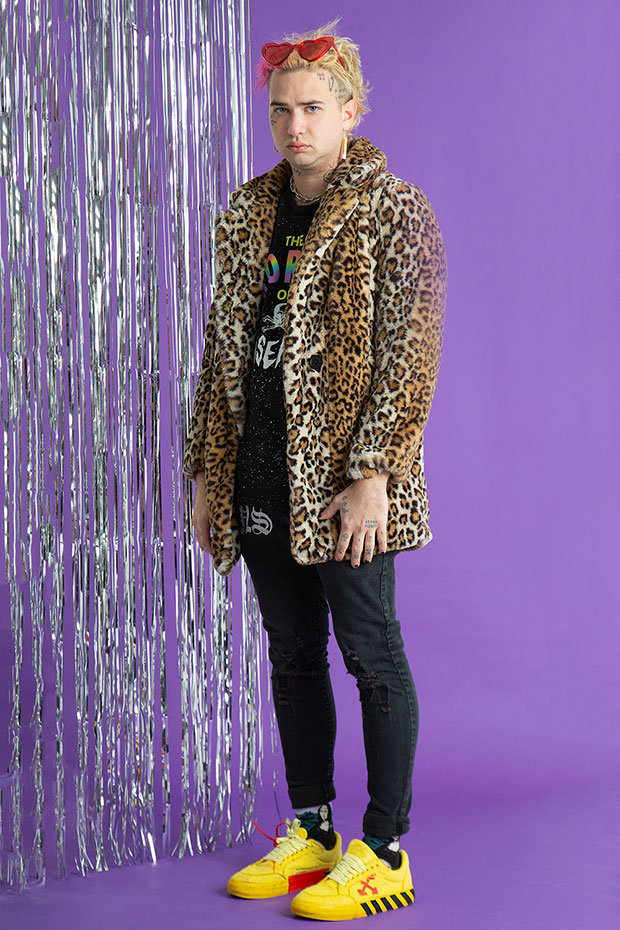 Jack Bruno arrived at HollywoodLife looking the definition of a punk rocker. Brightly dyed hair. Red heart-shaped glasses. Numerous tattoos, including a fresh one on his chest that reads “Please Be Gentle.” A cheetah-print coat that could have come out of Lux Interior’s closet. A crew covered in hardcore punk logos. But, pick your cliché – “There’s more than meets the eye,” “Appearances can be deceiving,” “Never judge a book by its cover” – because all apply to Jack. The former frontman for Raw Fabric has reinvented his sound by diving headfirst into hip-hop, but as his new single “Someday (Before U Get Bored)” proves, he has no intention of leaving his punk rock roots behind.