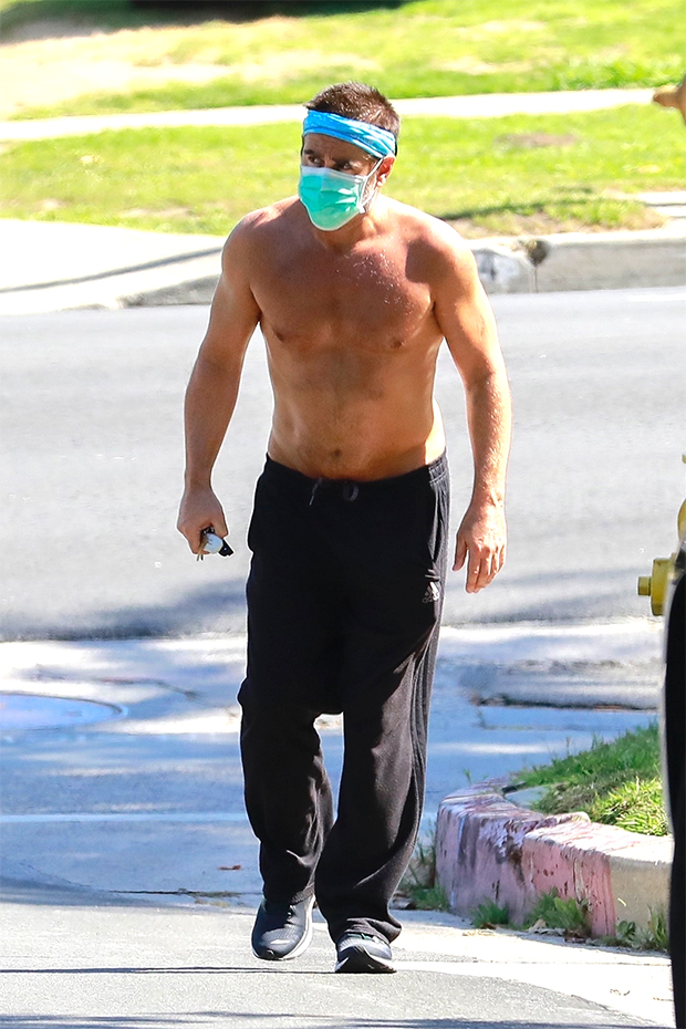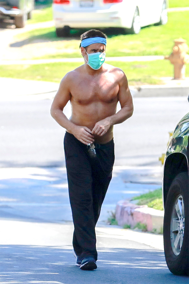 Traditionally, The Penguin has been one of the Caped Crusader’s more rotund rogues, so it will be interesting to see Colin Farrell’s take on the classic DC character when The Batman resumes filming. Colin went for a jog through the Los Feliz neighborhood of Los Angeles on Monday (May 4) and the 43-year-old actor looked great while exercising. Though he went shirtless on this run, he made sure to wear his protective face mask along with his Adidas track pants and headband. It was an excellent example of how to stay fit – while staying safe and respectful of others – during this time of “social distancing.”