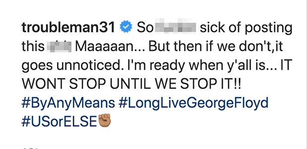 He was pronounced dead at the at 9:25 p.m. at Hennepin County Medical Center, according to the medical examiner, per The New York Times. Miley Cyrus was among the celebs who quickly spoke out about the incident, reminding her fans that “each one of us have a voice”. She wrote, “Like so many of you, I am angry, outraged and heartbroken about the injustice in our country that has been going on for way too long- centuries & generations,” Miley captioned the May 29 post. “So f**kin sick of posting this sh-t,” wrote T.I. while sharing a screenshot of an officer kneeling on George’s neck. “Then, if we don’t,it goes unnoticed. I’m ready when y’all is… IT won’t STOP UNTIL WE STOP IT‼️#ByAnyMeans #LongLiveGeorgeFloyd #USorELSE” LeBron James, an outspoken critic of police brutality, echoed those sentiments. He posted a picture of him wearing a shirt with Eric Garner’s last words (“I can’t breathe”) on May 27, a day after he posted a meme of a kneeling Colin Kapernick opposite the kneeling MPD officer. “Do you understand NOW!!??!!?? Or is it still blurred to you??” Janet Jackson also shared the meme to her account.