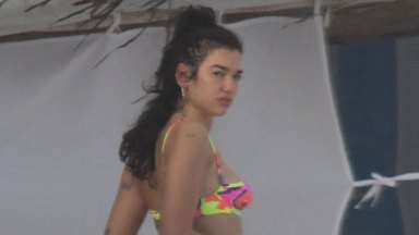 The Future Nostalgia singer looked sensational as she sported a thong bikini. The bright neon two-piece featured a ’90s inspired yellow, orange and pink pattern with a bandeau bustier style top. Dua looked incredibly toned in the sexy swimwear, which showed off her abs, derrière and legs. At one point, she added a button down yellow sarong style skirt, creating a high slit. She finished her look with a throwback pair of hoop earrings and yellow sunglasses to match, keeping her brunette hair up in a high half pony-tail.