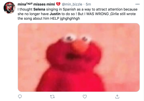 Spanish speaking fans immediately went to Twitter with their theories as others quickly translated the lyrics on Google. “Justin Bieber after translating DE UNA VEZ,” one fan wrote, including a .GIF of a guy crying as he puts down his phone. “I thought Selena singing in Spanish as a way to attract attention because she no longer have Justin to do so ! But I WAS WRONG ,Girlie still wrote the song about him HELP jghghghhgh,” another added, as several tweeted “Justin vibes.”