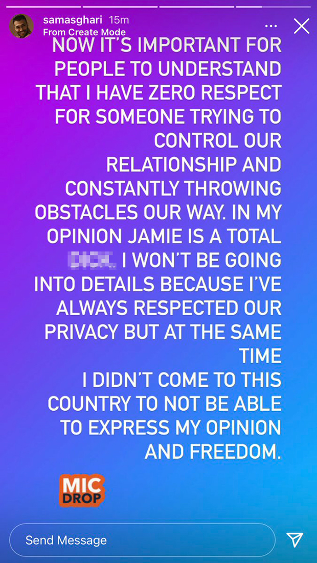 “I won’t be going into details because I’ve always respected our privacy,” added Sam, “but at the same time, I didn’t come to this country to not be able to express my opinion and freedom.” This post will certainly add fuel to the #FreeBritney movement, which has seen fans call for her to be released from her conservatorship and have total control of her life.