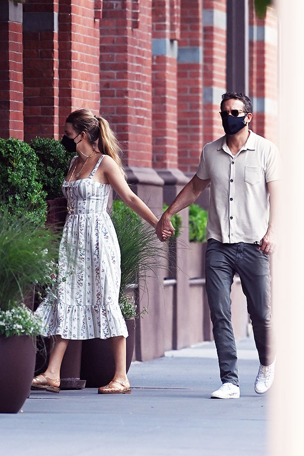 Sometimes, even though you love your kids to pieces, you gotta get away from them and have a quiet bit of “adult time.” Blake Lively and Ryan Reynolds did precisely that on Wednesday (May 19). The couple decided to take in the sunny New York City weather and go for a stroll through the Tribeca neighborhood in Manhattan. As they held hands for this walk, Blake, 33, wore a sundress that was perfect for the late spring/early summer weather. Blake had put her hair up in a messy ponytail and accessorized the look with some gold, including the chain attached to her protective face mask. Very “CDC-approved chic,” no?