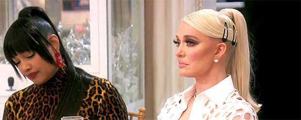 And Kyle held Sutton to that promise when the ladies reunited at Kathy Hilton‘s for an extravagant dinner party. Sutton actually initiated her planned conversation with Erika, but Erika didn’t want any part of it. “I don’t [want to talk to you]. I have enough problems. I only have enough capacity for what really matters. And your opinion of me does not matter,” Erika said before escaping to the bathroom.