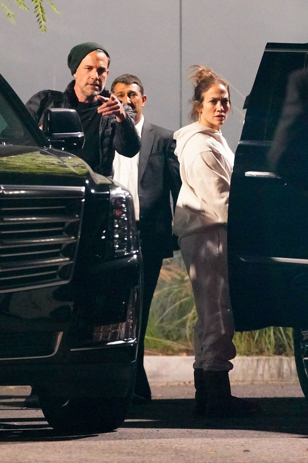 Jennifer Lopez, 52, and Ben Affleck, 49, have had a quiet last two weeks — but the couple are back together after their filming schedules in different countries! Jennifer glowed as she went makeup free in the photos, snapped on Friday, Nov. 19, rocking a casual white sweatsuit and a throwback pair of camel colored Ugg boots. She carried a black Louis Vuitton keep-all bag in her hand, which appeared to match the same one Ben threw over his shoulder.
