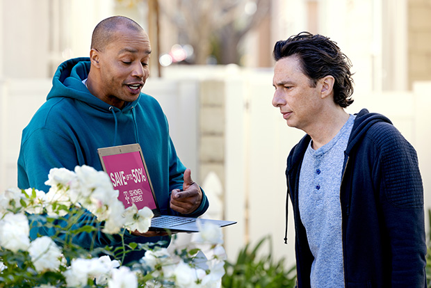 An unexpected Scrubs musical took place during Super Bowl LVI. Set to “I Feel Pretty,” Zach Braff starts off the T-Mobile ad frustrated with his Internet bill. “I feel defeated/feel mistreated / I’m so angry, I’m singing a song!” belts Zach as if he was on Broadway. From there, he vents his frustration, and his singing is heard by his neighbor, Donald Faison. “I’ve got T-Mobile internet!” he shouts before singing along. It seems that while Zach is left with poor download speeds and high bills, Donald has the opposite setup.