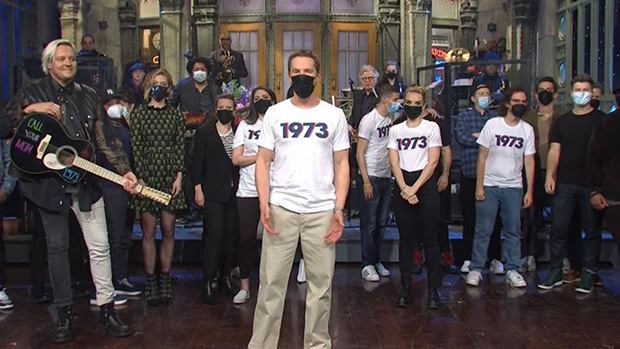 Following Benedict Cumberbatch’s second time hosting Saturday Night Live on May 7, the Doctor Strange in the Multiverse of Madness star threw his support behind a woman’s right to choose. As Benedict, 45, joined the SNL cast and musical guests Arcade Fire to bid goodnight, Cumberbatch wore a white t-shirt — created by the reproductive rights organization, the National Institute of Reproductive Health — with “1973” in black and red lettering. The number signifies the year the Supreme Court issued the Roe v. Wade decision (Jan. 22, 1973), establishing a woman’s right to get an abortion. Other SNL cast members – Mikey Day, Chloe Fineman, Chris Redd, Cecily Strong, Alex Moffat, and Kyle Mooney – wore identical shirts to Benedict’s.