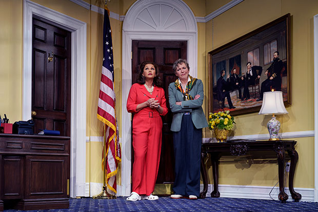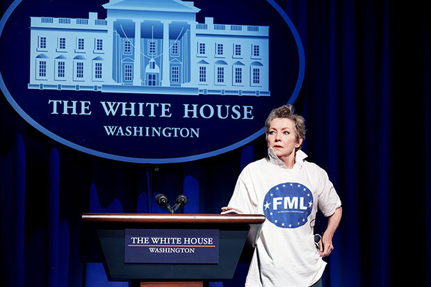 When we take a break from our crying — over the lives lost in mass shootings, the ending of abortion rights, the systemic racism, the war — and when we take a break from our protesting — for Black lives, for our children’s lives, for our lives — we find there may be a little time for laughter, and that can be done at the Shubert Theatre. In POTUS: Or, Behind Every Great Dumbass Are Seven Women Trying to Keep Him Alive, Tony nominated actress Julie White plays the engine of the farce, a role typically designated to a male actor. Here, Julie masterfully plays Harriet, the Chief of Staff to the bigot POTUS, who has her own political aspirations — if only she can survive the stupidity of man leading the country.
