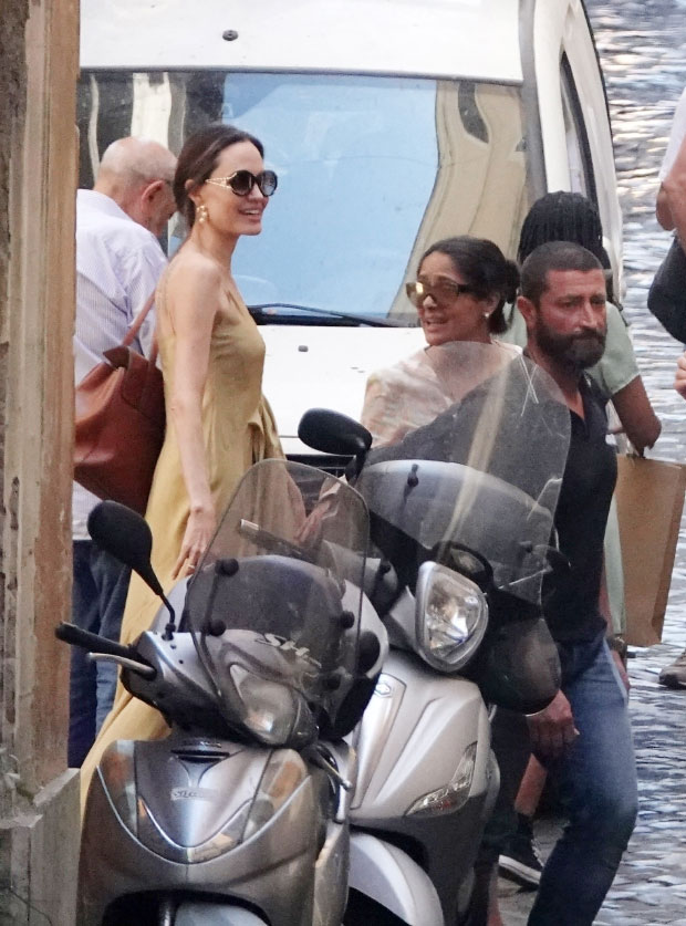 The crew walked by famed restaurant Abiti e Sogni before meeting up with Angelina’s close friend and collaborator Salma Hayek. Since The Eternals, the pair are working together once again on movie Without Blood, which Angelina is directing and Salma is starring in. The movie is currently in production in Rome, and the women were spotted filming near The Colosseum on June 22, after also shooting in Puglia and Basilicata in Southern Italy. Notably, Angelina also wrote the script based on the bestselling novel by Italian writer Alessandro Baricco. Salma was spotted hopping into an SUV with the family as they made their way to their next destination.