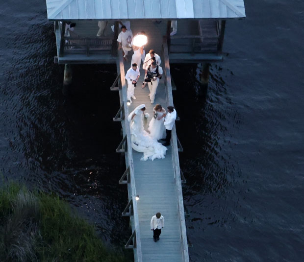 While the photos were taken at a distance, she appeared to be without her usual glasses that she was spotted rocking just two days before as she toured Savannah. She also held onto a flower bouquet as she followed Ben and Jennifer down the aisle, with her brother Samuel, 10, behind her. Sister Seraphina, 13, held Jennifer’s 20 foot long veil — part of her custom Ralph Lauren gown — alongside Jen’s child Emme, 14.