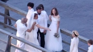 While the photos were taken at a distance, she appeared to be without her usual glasses that she was spotted rocking just two days before as she toured Savannah. She also held onto a flower bouquet as she followed Ben and Jennifer down the aisle, with her brother Samuel, 10, behind her. Sister Seraphina, 13, held Jennifer’s 20 foot long veil — part of her custom Ralph Lauren gown — alongside Jen’s child Emme, 14.