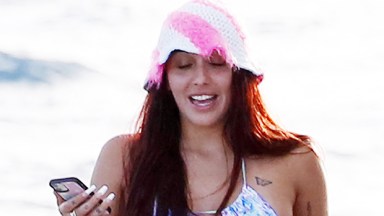 Below the bikini top, Lourdes showed off her toned tummy which was adorned with a diamond belly ring, that hung like a chandelier over her belly button. Coincidentally, the jeweled stomach piece matched well with the jewels that dangled from her cell phone. In the photographs, Lourdes was seen looking at her cell the entire time, which only accentuated the coordinated jewels. Her nails were painted half black and half white.