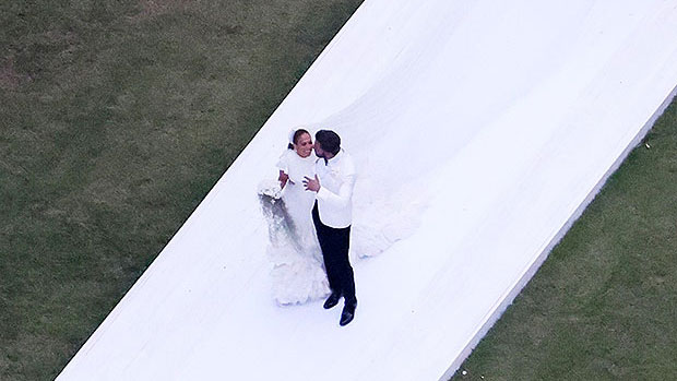 Jennifer stunned in three separate Ralph Lauren gowns for her big day, including a take on the designer’s classic turtleneck column dress with a ruffled train skirt. She then changed to a gorgeous pearl gown, followed by one with a sparkly keyhole cutout — the latter two presumably for the reception. The wedding itself was planned by Colin Cowie of Colin Cowie Lifestyle and had both an old Hollywood and rustic theme.
