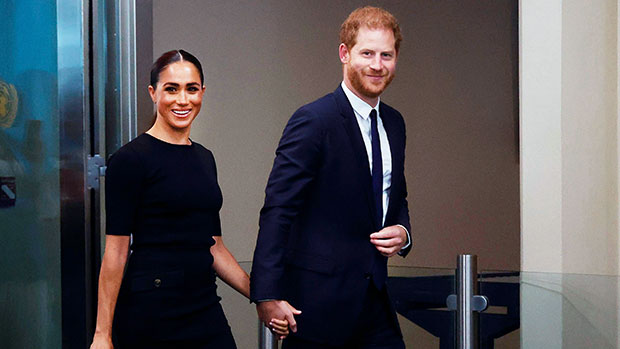 Prince Harry and Meghan Markle are back in England for the One Young World summit where the former actress will be making the keynote speech on Monday (September 5). In their first visit to the UK since the Queen’s Platinum Jubilee, the Sussexes were spotted boarding a train from London to Manchester, where the event is taking place in Bridgewater Hall. Prince Harry looked dapper in a navy suit jacket, while Meghan was sophisticated and chic in a light brown ensemble, as seen in photos here.
