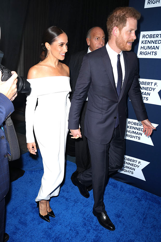 Harry, who got out of the car first, sported a gray cardigan, a dark t-shirt, jeans, and clean shoes. A bodyguard held an umbrella for King Charles‘s son and Meghan as they exited the vehicle and made their way into the members-only club. The eatery — owned by Jeff Klein, who Page Six notes “also runs the famed Sunset Tower hotel” — bans cellphones and photos, meaning that Meghan and Harry could enjoy their date night in peace.
