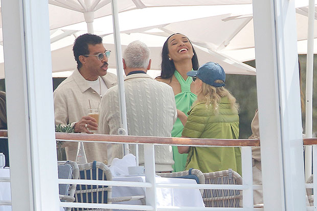 Lionel Richie and his girlfriend Lisa Parigi were spotted celebrating his daughter Sofia Richie’s wedding at the Hotel du Cap-Eden-Roc in France on Saturday. The legendary singer/songwriter, 73, certainly looked the proud papa as he was all smiles hanging out with Lisa, 33, and a group of friends during the star-studded weekend. Rocknig a tan jacket and white shirt, Lionel shared a hearty laugh with Lisa, who looked spectacular in a bright green gown.