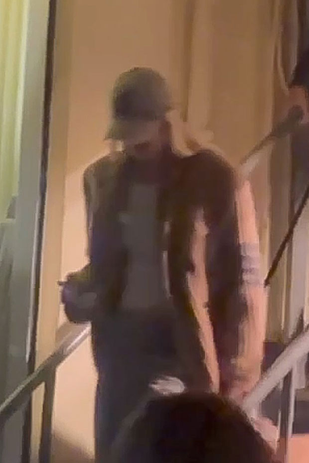 Gigi’s look included a brown sweater over a white top, gray sweatpants, and a baseball cap. Leo went with a black jacket over a dark shirt, jeans, and a black baseball cap. He also had a black face mask over his mouth and nose.