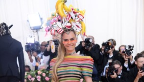 Cara Delevingne Stuns In A Rainbow Romper Outfit & Banana Hat At Met Gala 2019