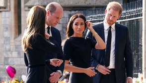 The Prince and Princess of Wales and The Duke and Duchess of Sussex view the tributes left after the Death of Queen Elizabeth II, at Windsor Castle, Windsor, Berkshire, UK, on the 10th September 2022. 10 Sep 2022 Pictured: The Prince and Princess of Wales and The Duke and Duchess of Sussex view the tributes left after the Death of Queen Elizabeth II, at Windsor Castle, Windsor, Berkshire, UK, on the 10th September 2022. Photo credit: Mirrorpix / MEGA TheMegaAgency.com +1 888 505 6342 (Mega Agency TagID: MEGA894266_001.jpg) [Photo via Mega Agency] View Gallery View Gallery 46 Photos.
