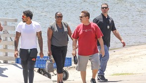 Naya Rivera’s ex & father of her son Ryan Dorsey entered Lake Piru with her dad George. The pair appeared to be seeking a connection with the missing actress as they embraced in the water.