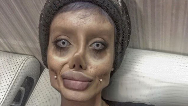 Sahar Tabar (born 1989 in Iran) is an Iranian woman, model and Instagram celebrity. Sahar became a viral sensation in 2017 when reports claimed she underwent 50 plastic surgeries to transform herself into an Angelina Jolie look-alike. A Belgian news site claimed that she also underwent an extreme diet to lose 40 kilos / around 88 pounds, giving her a more emaciated look. Her Instagram pictures showed a radically transformed face, with sunken eyes and exaggerated cheekbones. Sahar responded to these reports with a Nov. 2017 video where she reportedly mentioned technology and makeup, almost indicating that her look was the product of prosthetics. She removed all pictures of her “before” her surgeries, but these shots have since appeared throughout the Internet.