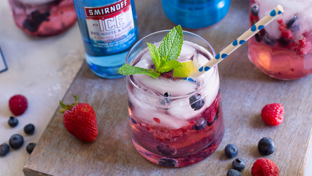 We’re getting patriotic with the Smirnoff Very Berry Vodka Smash this MDW! Add 1.5 oz of Smirnoff’s Red, White & Berry vodka, ¼ cup fresh berries — can combine blueberries, raspberries, blackberries, strawberries and cherries — and a few sprigs of mint to the bottom of a glass and muddle. Add ice to the glass and op with club soda and 2 oz of White & Berry Smirnoff Smirnoff Ice. Stir to combine and garnish with mint and extra berries for a red, white and berry drink!