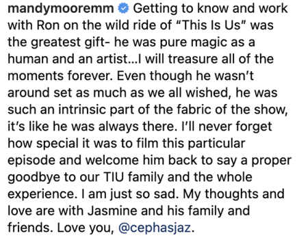 Mandy Moore’s message about the loss of Ron Cephas Jones. (Instagram)