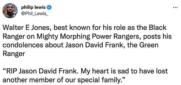 - His co-star who played the Black Ranger, Walter E. Jones, confirmed the news of Jason’s death, saying his ‘heart is sad’