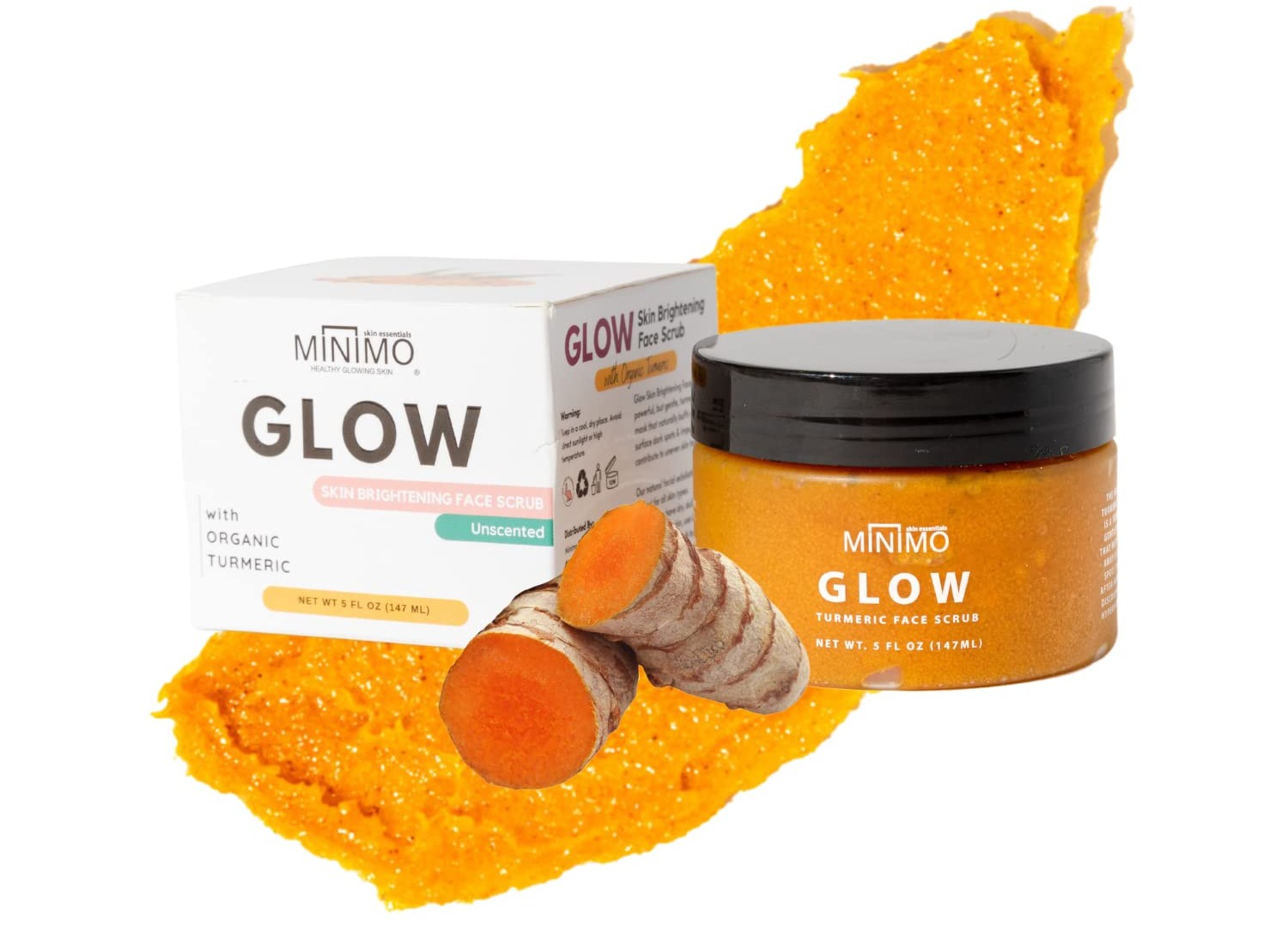 The Minimo Glow Brightening Facial Scrub is a must-have for achieving healthy and glowing skin. It is a powerful yet gentle exfoliator that is formulated with organic turmeric, organic cinnamon, raw manuka honey, chamomile extract, lemon extract, and oils that won't clog pores. This scrub effectively buffs away surface dark spots on the skin, leaving you with a radiant glow.