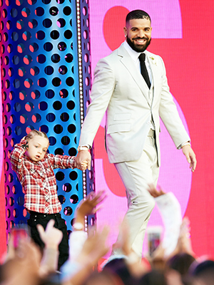 The ‘Views’ rapper danced with his son, after an intro where the youngster gave a breakdown of a drawing, including his new album artwork.