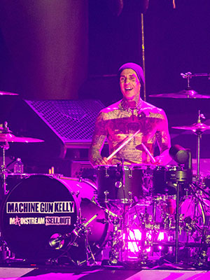 Kourtney Kardashian & Travis Barker Cuddle & Kiss Before His Performance At Tommy Hilfiger NYFW Show